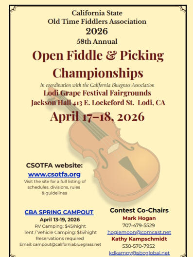 Look through this site to find information about what is going on in the California State Old Time Fiddlers Community.